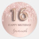 Elegant, classic, glamorous and girly for a Sweet 16, 16th birthday party. Rose gold and blush pink, gradient background. Decorated with rose gold, pink drips, paint dripping look. Personalize and add a name. With the text: Happy Birthday. The name is written with a modern dark rose colored hand lettered style script. Number 16 is written with a balloon style font.
