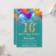 16th Birthday Teal and Gold Colourful Balloons Invitation
