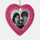 Celebrate a 16th happy year of marriage with a custom photo ornament in a delightful heart shape frame. Simply upload your own photo of the married couple and it will appear in the cutout. The pink surround features a white script font and decorations. The words are: 16th Wedding Anniversary - 16 years of love - 16 years of joy. On the back you can personalize this keepsake with your own message and can also add the year or a full date if you prefer. Note: if you like the sixteen year anniversary ornament but have your heart set on a different colour, please contact me.