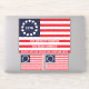 Your optional text will create a one of a kind personalized Betsy Ross Flag contour vinyl sticker in this original 1776 flag design. All text in this red, white and blue design can be modified or removed, giving you the options to make the perfect Betsy Ross die-cut sticker. Two smaller flag stickers are included as a bonus to this patriotic flag sticker sheet. Show off your patriotic spirit with America's first flag to stick wherever you want.