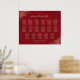 This 17 table crimson red and gold wedding seating chart features a simple yet elegant design with a fancy script calligraphy title and ornate golden faux foil frills in the corners. There is space for 170 guests with 10 seats per table, and the names of the couple and wedding date appear at the bottom. Stylish, sophisticated, and glam, this seating chart will add grace and beauty to your reception while making it easy for your guests to find their tables.
