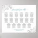 Ce tableau contient les assignations de table pour 170 invités à 17 tables, 10 invités par table. Le design est simple mais élégant avec du gris foncé et du texte turquoise ou turquoise sur une dentelle arrière - plan blanche et argentée en faux feuille dans les coins. Belle façon d'aider vos invités à trouver la bonne table à votre réception de mariage. Le titre dit "s'il vous plaît trouvez votre table" dans élégante calligraphie de script.