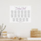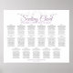 Faites de votre réception de mariage une belle avec ce tableau de sièges. Conçu dans le cadre de notre Suite de Mariage Purple & Grey Elegant, il présente un design simple mais élégant avec du texte Purple & Grey sur un arrière - plan blanc avec une bordure florale en faux feuille d'argent. Ce graphique montre les affectations de table afin que vos invités aient un temps facile à trouver la bonne table.