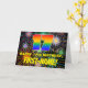 The front of this bold and cheerful birthday-themed greeting card design features a large number “17” having a multicolored rainbow spectrum inspired gradient pattern. It also features the message “HAPPY 17th BIRTHDAY,”, and a personalized recipient name. The background of the front features an exciting, colourful pattern that resembles bursting celebratory fireworks. The inside features a custom birthday greeting message, or could perhaps be cleared and left blank if a message is to be written by hand instead. A colourful, customizable birthday greeting card like this might be a fun way to deliver a birthday greeting message to somebody who is celebrating their seventeenth birthday. [~Z0000619]