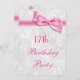 17th Birthday Party Damask and Pink Faux Bow Invitation