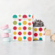 A seamless pattern design made up of columns of seven circular spots ordered by size and arranged in alternating directions in an attractive pallet of colours.