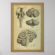 Vintage 1850 anatomical print illustration. Human brain and cross section.
