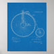 1881 Vintage high wheeler or Penny farthing bicycle US patent technical design illustration. Lever propelled.