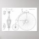 1886 Vintage bicycle US patent technical design illustration. With propelling levers. Also known as a penny farthing or high wheel velocipede.