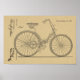 1891 Vintage bicycle US patent technical design illustration. Bicycle gears, chainless drive. Antique background paper.
