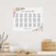 This beautiful 18 table pink floral wedding seating chart features a traditional layout with room for 180 guests with 10 seats per table. The rustic boho chic design features hand painted watercolor roses, flowers, and blossoms in shades of blush pink, dusty rose, ivory, and mauve with an elegant script calligraphy title. The names of the couple and wedding date are displayed at the bottom. Wonderful way to add elegance, beauty, and style to your wedding reception while making it easy for your guests to find their seats.