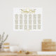 This beautiful wedding seating chart is simple, sophisticated and chic. Featuring gold lettering and a faux foil vintage flourish it has seating assignments for 18 tables making it easy for your guests to find their tables at your reception.