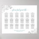 Ce tableau vous aidera à trouver les tables qui vous sont assignées à la réception de votre mariage. Il présente un design simple mais élégant avec du gris foncé et du texte turquoise ou turquoise sur un arrière - plan blanc. Le titre est écrit dans de belles calligraphies de script lettering et dit : s'il vous plaît trouver votre table. Le design présente une filigree florale en faux feuille argent en dentelle dans les coins. Contient des sièges pour 18 tables à 10 personnes par table ou 180 personnes.