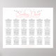 Faites de votre réception de mariage une belle avec ce tableau de sièges. Il présente un design simple mais élégant avec du texte rose et gris sur un arrière - plan blanc avec une bordure florale en faux feuille d'argent. Ce tableau montre les affectations de table pour 180 personnes avec 10 sièges par table, de sorte que vos invités auront un temps facile à trouver la bonne table.