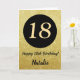 18ème Joyeux Anniversaire Carte de Parties scintillant Noir et Or avec nom personnalisé. Pour plus de personnalisation, cliquez sur le bouton "Customiser" et utilisez notre outil de conception pour modifier ce modèle.