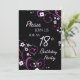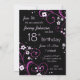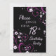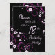 18ème carte d'invitation de fête d'anniversaire dans le motif floral de noir, fuchsia et rose élégant, sensible et élégant avec des remous espiègles. Personnalisable avec vos détails de partie.
