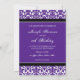 18èmes invitations de fête d'anniversaire de coutume dans le pourpre foncé élégant de prune, motif floral classique noir et blanc de damassé. Ajoutez vos détails de nom et de partie pour 18ème une invitation unique et élégante de fête d'anniversaire.