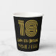 This vintage style and 1920s-1930s style inspired birthday-themed paper cup design features a large art deco inspired style number “18”, plus the birthday greeting message “Happy 18th Birthday,” and a personalized name. The background is colored black. Birthday themed paper cups like this might be fun to use at a birthday party being held for somebody who is celebrating their eighteenth birthday. [~Z0000546]