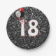 18th Birthday Balloons on Black Glitter Paper Plate