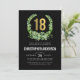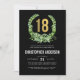 Modern 18th birthday design for boys with a golden eighteen and green wreath on a black background.