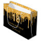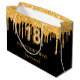 18th birthday black gold glitter drips name large gift bag