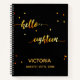Elegant and modern for your notes or as a guestbook for a 18th birthday party. Black backdrop and faux gold text written with a trendy hand-lettered style script: hello eighteen. With golden dots as decor. Templates for name and date, golden letters. You can change the background colour to match your theme. Click customize and then "select a background colour" on your right.