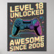 18th Birthday Boy Gift Level 18 Gamer 2008 18 Year Old Party