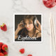 Template for own Your photo. White text overlay: Eighteen!. Written with a modern hand lettered style script. A napkin for a 18th birthday party.