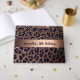 Elegant, cool, glamourous and feminine for a 18th birthday party with brown, golden and black leopard print, decorated with golden confetti. Template for a name and age 18. A faux bronze metallic looking band. Black hand lettered style script, letters.