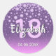 An elegant, glamourous and girly 18th birthday party sticker. Purple and pink coloured faux glitter with faux diamond sprinkle and a golden frame. Templates for a name, age 18 and a date. Date of birth or the date of the party/anniversary. White and pink coloured letters. The name is written with a hand-lettered style script.