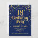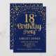 Elegant design in navy blue and faux glitter gold. Features stylish script font and confetti. Message me if you need custom age.