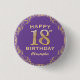 18th Birthday Party Purple and Gold Glitter Frame Button. For further customization, please click the "Customize it" button and use our design tool to modify this template.