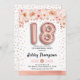 18th birthday party invitation. Elegant design in faux glitter rose gold with floral accent. Invite card with rose gold number 18 balloons, script font with confetti. Blush coral pink, white. Perfect for a stylish eighteenth bday celebration. Message me if you need custom age.