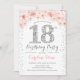 18th Birthday Party - White Silver Pink Invitation