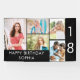 Personalized banner celebrating an 18th Birthday - or customize for any other age! The photo template is set up for you to add 5 of your favourite photos which are displayed in a photo collage of horizontal landscape and vertical portrait formats. The wording simply reads "Happy Birthday [your name]" in modern print typography and "18" is also editable if you would like this design for a different birthday. If you want to customize further or change the background and text colours, click the button to edit using the design tool.