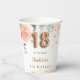 For an elegant 18th birthday party. A white background. On the front and the back: Personalize and add a name and a date. Decorated watercolored rose gold and blush pink florals, eucalyptus greenery. Nr 18 is written with a balloon style font.