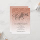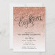 This trendy rose gold ombre glitter birthday party invitation features faux rose gold sparkly glitter and a fancy script typography heading. Add your custom text using the template form. Additional options for text and layout are available if you choose to customize further.