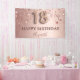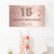 Elegant, classic, glamourous and girly for a 18th birthday party. Rose gold and blush pink, gradient background. Decorated with rose gold and pink stars. Personalize and add a name. With the text: Happy Birthday. The name is written with a modern dark rose coloured hand lettered style script. Number 18 is written with a balloon style font.