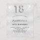 A modern, stylish and glamourous invitation for a 18th birthday party. A faux silver looking background, decorated with glitter sparkles. Personalize and add your name nad party details. Number 18 is written with a balloon style font, script.