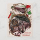 This early 1900s image of people gathering in the station and riding an old-fashioned locomotive and train home for the Christmas holidays. It's not too cold with slight snow in the background and red, white, and green flags for festive holiday decorations.