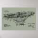 1909 Vintage airship patent design drawing. US patent technical design drawing. All of our U.S. patent drawings have been restored and enhanced.