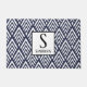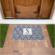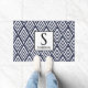 Modern geometric white art deco arrows pattern doormat with your personalized monogram letter and family name in black.