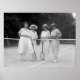 Four women at the net in tennis outfits. Great old 1920s women's fashion photo.