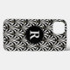 Vintage art deco patterned phone case in white, black, and gold featuring your personalized initial letter in white.