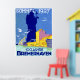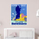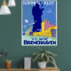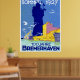 Vintage 1927 poster celebrating the centennial of Bremerhaven, Germany which was founded in 1827. The design depicts a harbour view of the city and the Roter Sand lighthouse in the background.