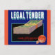 1930s Legal Tender orange crate label Postcard