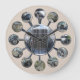 1934 Cabriolet Hupmobile Round Wall Clock-is created with assorted photography shots inside and out of the antique Hupmobile vehicle. Each clock number rests on a unique shot of this pristine car. The clock numbers are made of a steel pattern and extrude out from the centre. The photos are trimmed in metal as well. The centre of clock has two options, keep the one you like and delete the other. One is the grill front of the vehicle, one is the front side exterior view. The background of this clock is a creamy off-white leather look.