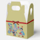 Tan gable-style favour box with a vintage 1940s image, on the front and back, of children at play with a red satin ribbon border and red satin bow. See the entire Patriotic 40s Favour Box collection in the PARTY FAVORS section.