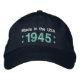 1945 or Any Year 70th Birthday A6 BLACK and TEAL Born in 1945 or Any Year 70th Birthday A04 GRAY Hat WHITE Embroidery with STARS - Quality Workmanship Fun birthday hat that you can personalize with a sentiment, name, and year. All text is totally customizable, so also suitable for a 71 72 73 74 75 76 77 78 79 year birthday, or any other year you need. You can also change the hat colour, hat style, or thread colour for a different look.