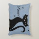 Pillow with a 1950s black cat with black stars with a "construction boom blue" background.
